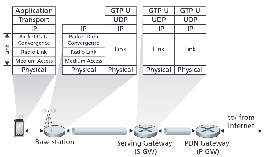 IP troppo lunghi per essere trasmessi negli slot.ACK/NAK basati sul protocollo ARQPDCP): Effettua la compressione degli header per diminuire il numero di bit trasmessi nel link e la (de)cifratura del datagramma IP utilizzando le chiavi ottenute tramite i messaggi scambiati tra il dispositivo e l’MME quando il dispositivo si è collegato per la prima volta alla rete.