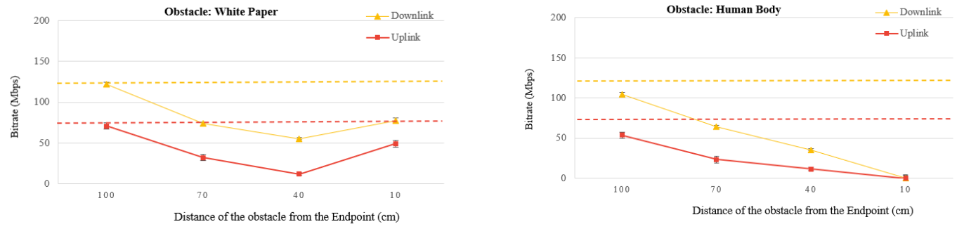 L’ultimo esperimento è stato misurare l’effetto dell’inserimento di ostacoli, divisi in ostacoli fisici spessi, ostacoli fisici “fini” e ostacoli occasionali.