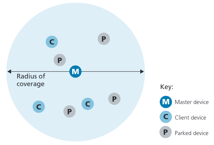 PAN - BluetoothLe reti PAN (Personal Area Network) hanno raggio di copertura minore di $5m$, e sono utilizzate per rimpiazzare tanti collegamenti cablati.