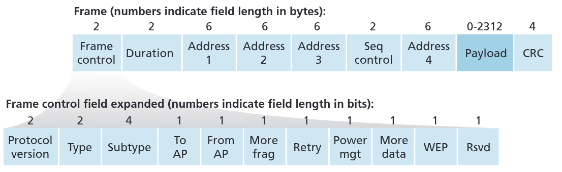 I numeri sopra i sotto campi del frame control rappresentano la lunghezza in bit.