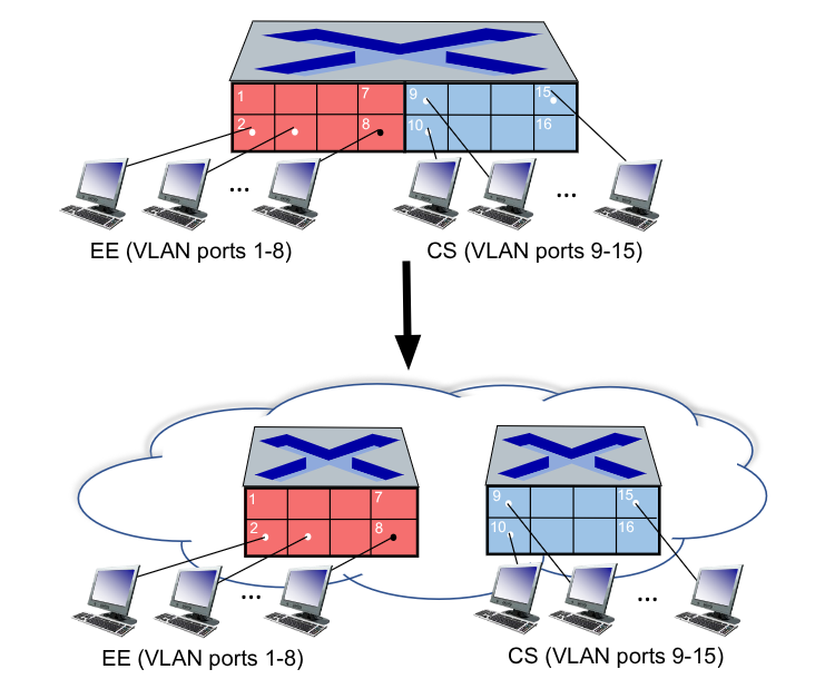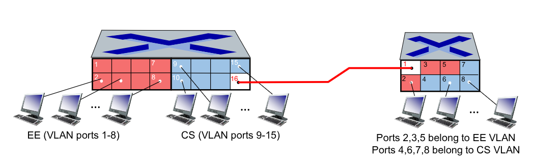 L’introduzione delle VLAN introduce però altri problemi amministrativi. Se ad esempio un utente di un dominio di broadcast si dovesse fisicamente spostare attaccandosi ad uno switch di un altro dominio, vorrebbe comunque essere logicamente connesso allo switch del suo dominio, non a quello attuale.