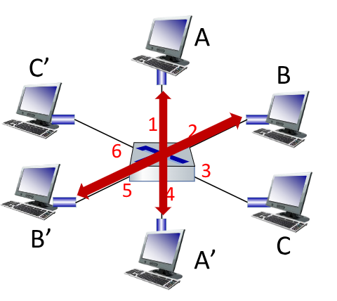 Ogni host ha una connessione dedicata verso lo switch, ognuna amministrata con il protocollo ethernet.