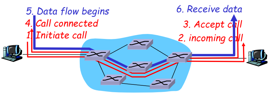 Non abbiamo in realtà nemmeno il concetto di connessione, ma semplicemente ogni switch inoltra i messaggi senza mantenere uno stato.