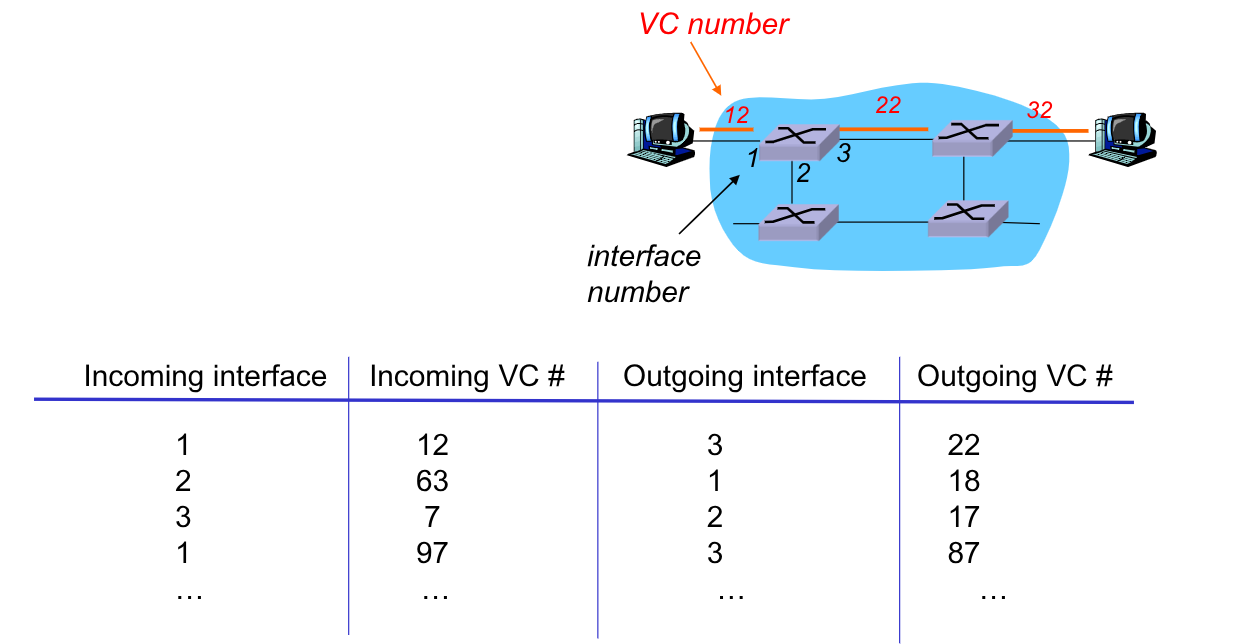 Quando un pacchetto viene ritrasmesso da uno switch, gli viene cambiato il VC number in accordo con la propria forwarding table