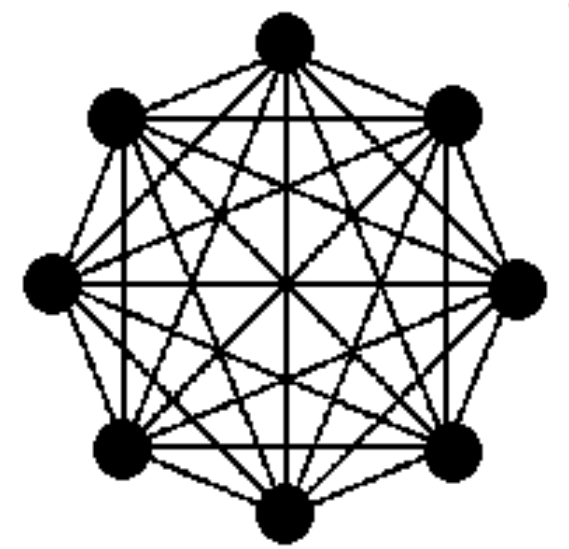 In questa rete abbiamo nodi capaci di offrire servizi di routing, inoltrando informazioni ai propri nodi adiacenti. La rottura di un nodo o di un link crea due sottoreti che non possono comunicare tra loro.