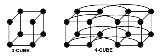 Dato un ipercubo in $d$ dimensioni, abbiamo $N = 2^d$ nodi con $d \cdot \frac{N}{2} = d \cdot 2^{d-1}$ link.
