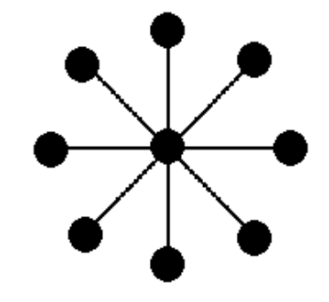 È una rete con $N-1$ link, con tolleranza ai guasti fortemente dipendente dalla “robustezza” del nodo centrale, che fa da single point of failure.