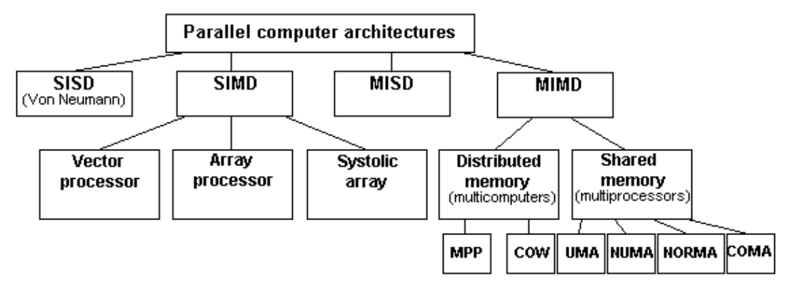 DM-MIMD MPP (Massively Parallel Processing): L’elaborazione MMP è utilizzata in applicazioni scientifiche e in particolari contesti di calcolo commerciale-finanziario. Il sistema si basa su migliaia di nodi (CPU standard ognuna con un proprio OS e una propria memoria) e su una rete di interconnessione custom molto potente (larga banda e bassa latenza). È inoltre necessario disporre di software capaci di partizionare il lavoro e i dati su vari processoriDM-MIMD COW (Cluster Of Workstations): Ha due caratteristiche principali: