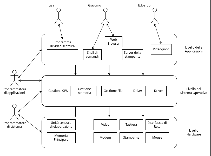 Concettualmente, un sistema operativo può essere rappresentato con questo schema a strati:
