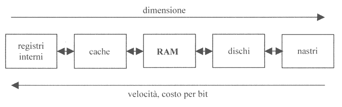 Possiamo associare questa gerarchia a due parametri: capacità totale della memoria, velocità di accesso in termini di costo per bit