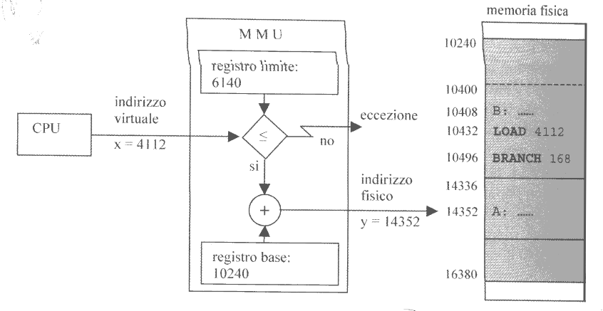 Seppur vero che l’area fisica assegnata ad un processo dovrà avere una dimensione in byte sufficiente a contenerne l’intera memoria virutale, la localizzazione nella memoria fisica avverrà a partire da un indirizzo $I$.