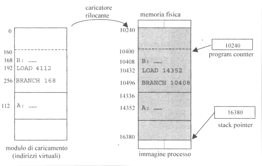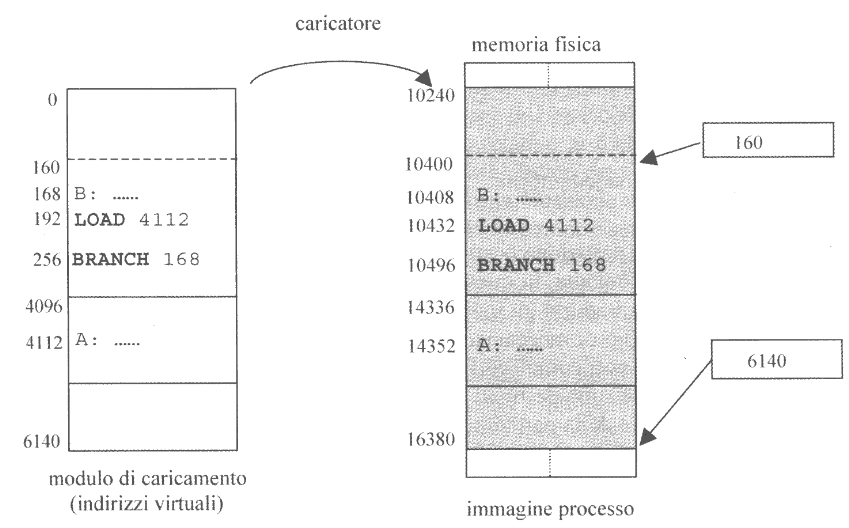 Nel caso di rilocazioni statiche, il caricatore genererà l’immagine del processo traducendo gli indirizzi virtuali sommandogli il contenuto del program counter
