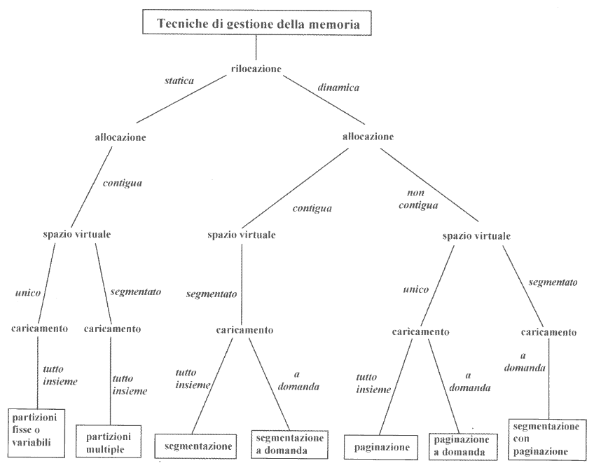 Nel seguente schema possiamo vedere uno schema ad albero che elenca tutte le tecniche di gestione della memoria: