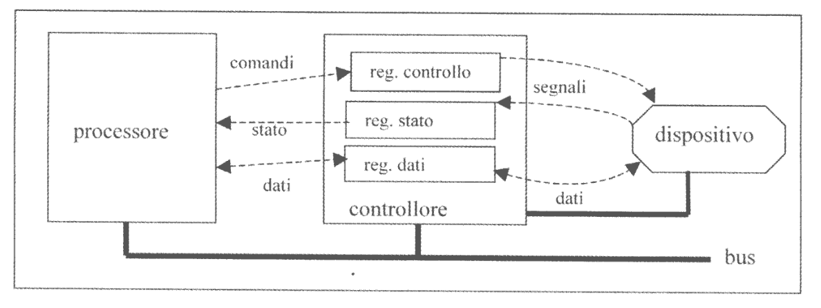 La CPU agisce sul controllore tramite i registri di cui questo dispone e che vengono indirizzati mediante le istruzioni macchina di I/O.