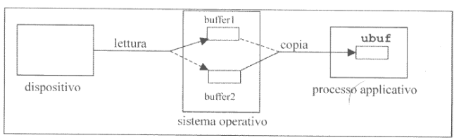 Ci sono diverse ragioni per le quali riserviamo questi buffer, prima fra tutte quella di far fronte alla notevole differenza fra la velocità con cui il processore può produrre/consumare informazioni e quella del dispositico di consumarle/produrle. Il loro utilizzo introduce però anche dell’overhead, dovuto proprio alla doppia copia dei dati, prima dal dispositivo al buffer e dopo dal buffer all’u-buf del processo applicativo.