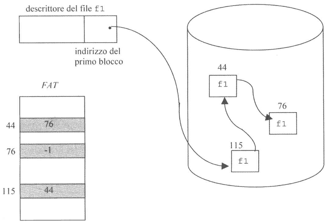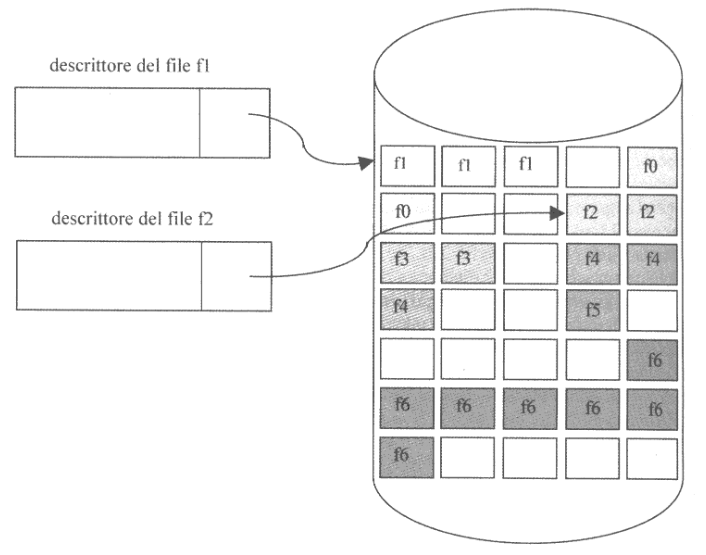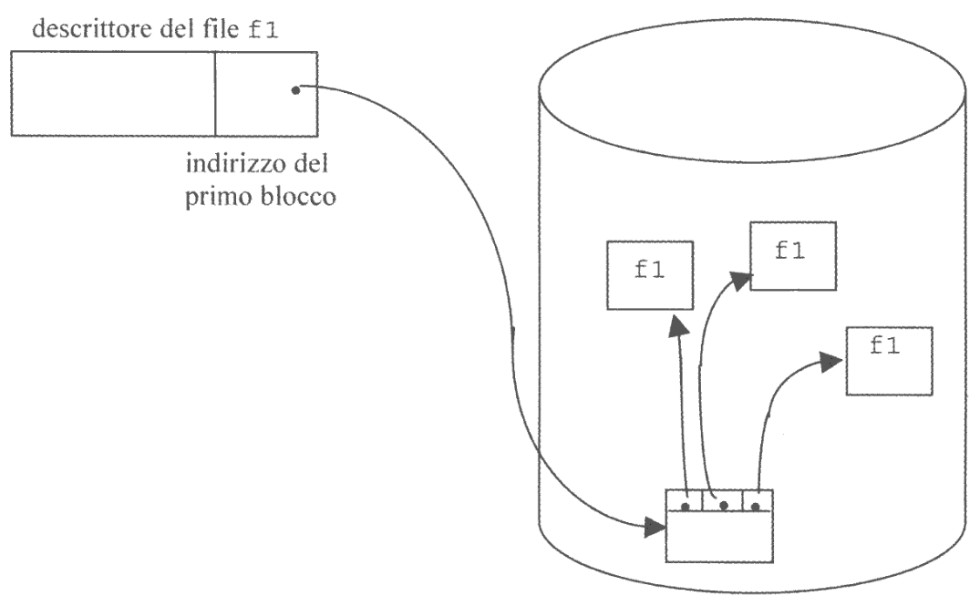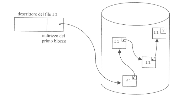 Questa tecnica memorizza ogni file in un insieme di blocchi non contigui organizzati in una lista concatenata.