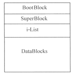 La prima regione, detta BootBlock, occupa un blocco fisico, allocato ad un indirizzo prefissato, e contiene il programma di inizializzazione del sistema da eseguire nella fase di bootstrap.