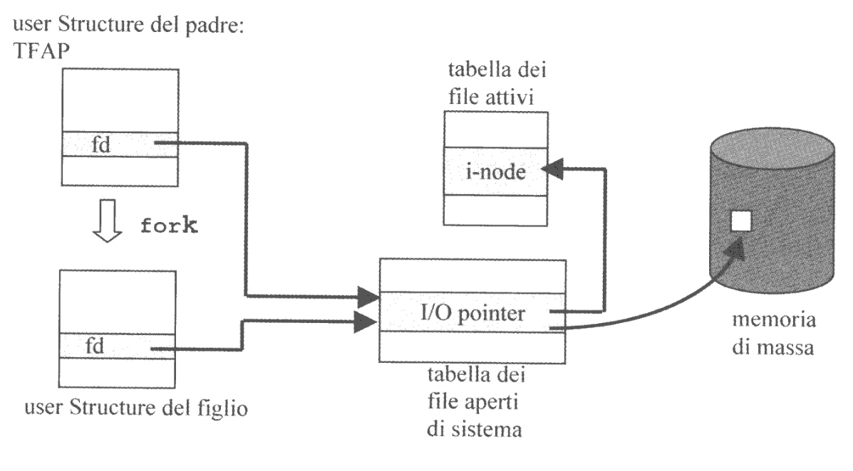 Se invece un processo genera dei figli (ad esempio con una fork()) questi condivideranno con il padre i vari file descriptor e di conseguenza anche gli I/O Pointer.
