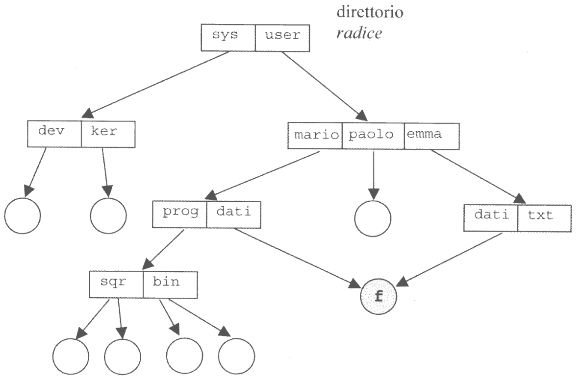 root) appartiene ad un altra directoryIn alcuni sistemi, come in UNIX e Linux, viene permesso a più directory di condividere lo stesso file attraverso il linking.