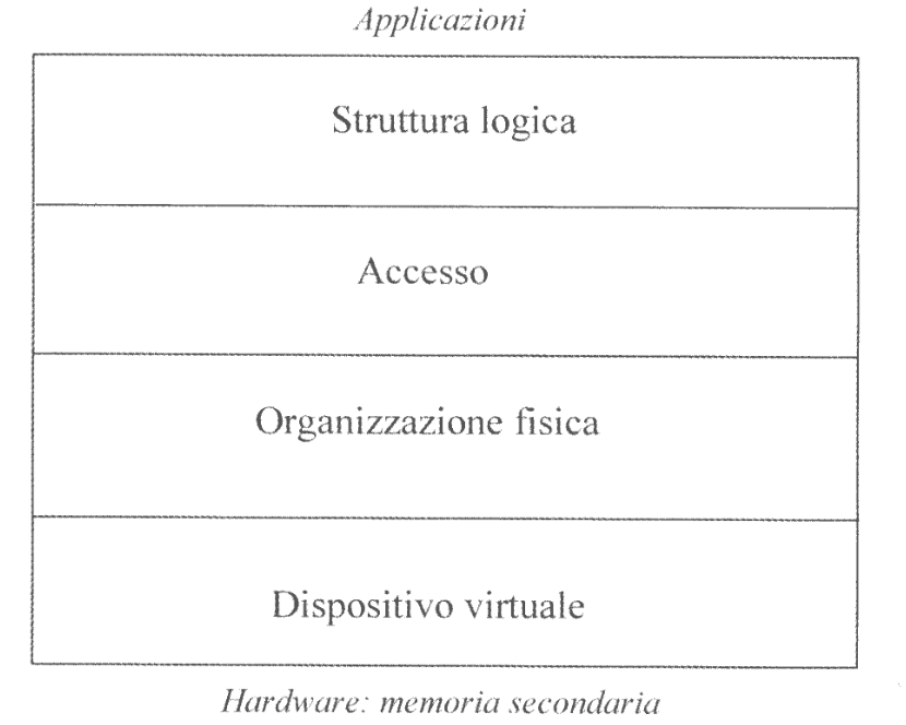 Il livello più alto rappresenta la Struttura Logica, che presenta all’utente una visione astratta delle informazioni presenti sul disco. Questo livello prescinde dalle caratteristiche del dispositivo e dalle tecniche di allocazione e accesso alle informazioni adottate dal sistema.